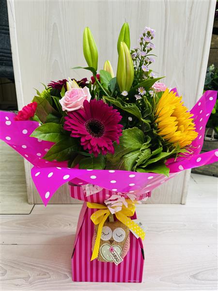 Please note that due to the seasonal availability of flowers it may be necessary to vary individual stems from those shown. Our skilled florists may substitute flowers for one similar in style, quality and value. Where our designs include a sundry item like a vase or basket it may not always be possible to include the exact item as displayed. If such an occasion arises we will make every effort to replace the item with a suitable alternative.